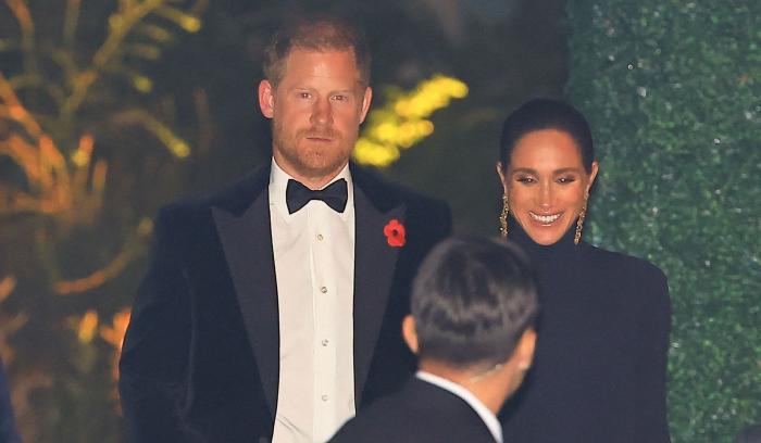 Le duc et la duchesse de Sussex, désormais installés en Californie, ont fait une entrée très remarquée. Meghan Markle portait un haut noir ajusté et une jupe portefeuille qui sublimait sa silhouette, tandis que Harry affichait un smoking élégant et un nœud papillon, fidèle à l’allure d’un agent secret. Un détail n’a échappé à personne : le prince arborait un coquelicot rouge, symbole du Jour du Souvenir, célébré le même week-end au Royaume-Uni.
