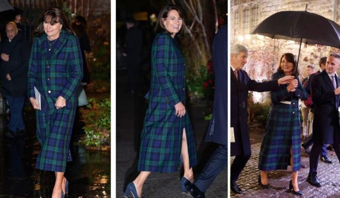 Lors du concert de Noël Together at Christmas, Carole Middleton a surpris par son élégance sobre et très royale. Son manteau en tartan bleu et vert, parfaitement coupé, semblait directement inspiré des looks emblématiques de sa fille. Quelques jours plus tard, la princesse de Galles confirmait cette impression en arborant un manteau quasiment similaire lors d’une visite caritative très symbolique.