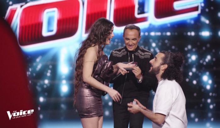 Après avoir intégré l’équipe de Lara Fabian, il sort une bague et demande Sasha en mariage, prenant le public et les coachs à témoin. Une double pression assumée : celle de convaincre les fauteuils de se retourner, et celle d’un engagement amoureux devant des millions de téléspectateurs.