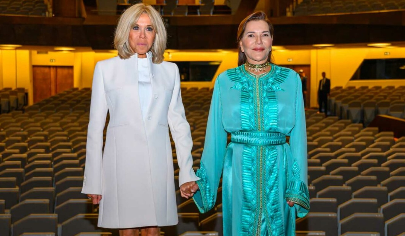 Brigitte Macron est présente pour cette occasion, dans un rôle de représentation. Elle assiste à un concert dirigé par la pianiste et cheffe d’orchestre Dina Bensaïd. Une figure montante qui incarne cette nouvelle scène artistique. La soirée réunit également plusieurs membres de la famille royale marocaine. Lalla Meryem, Lalla Hasnaa et la jeune Lalla Khadjika apparaissent dans des tenues traditionnelles, mettant en avant le savoir-faire local.